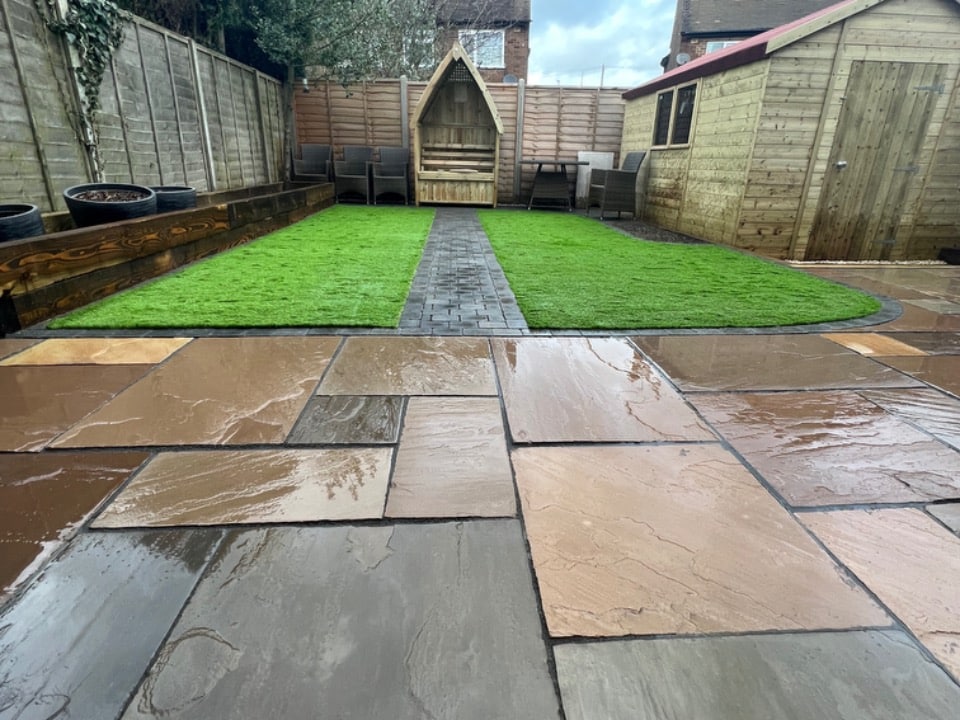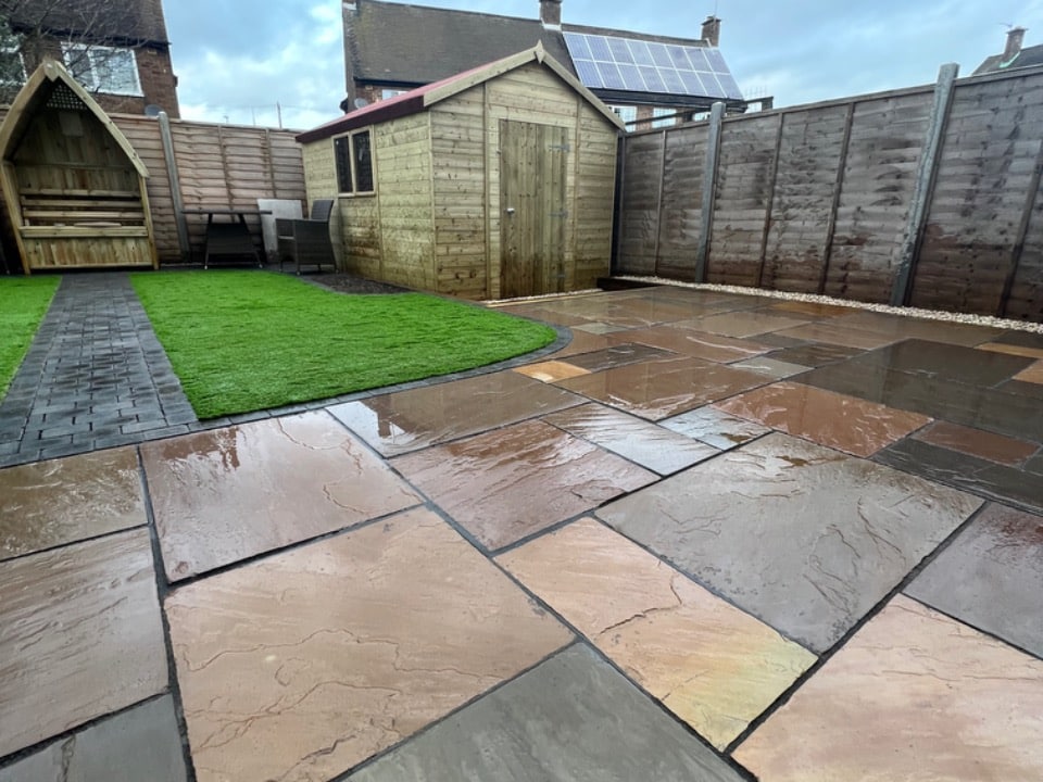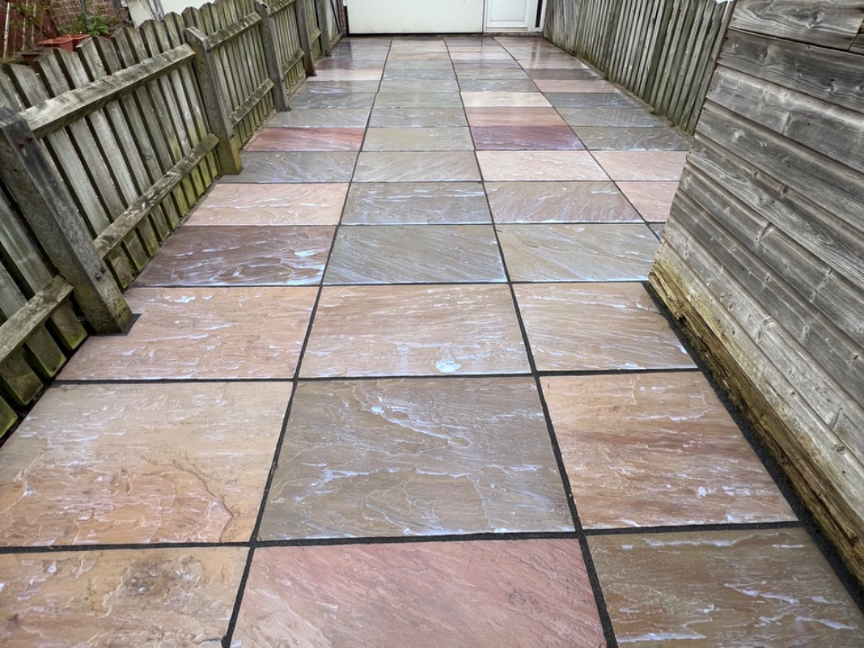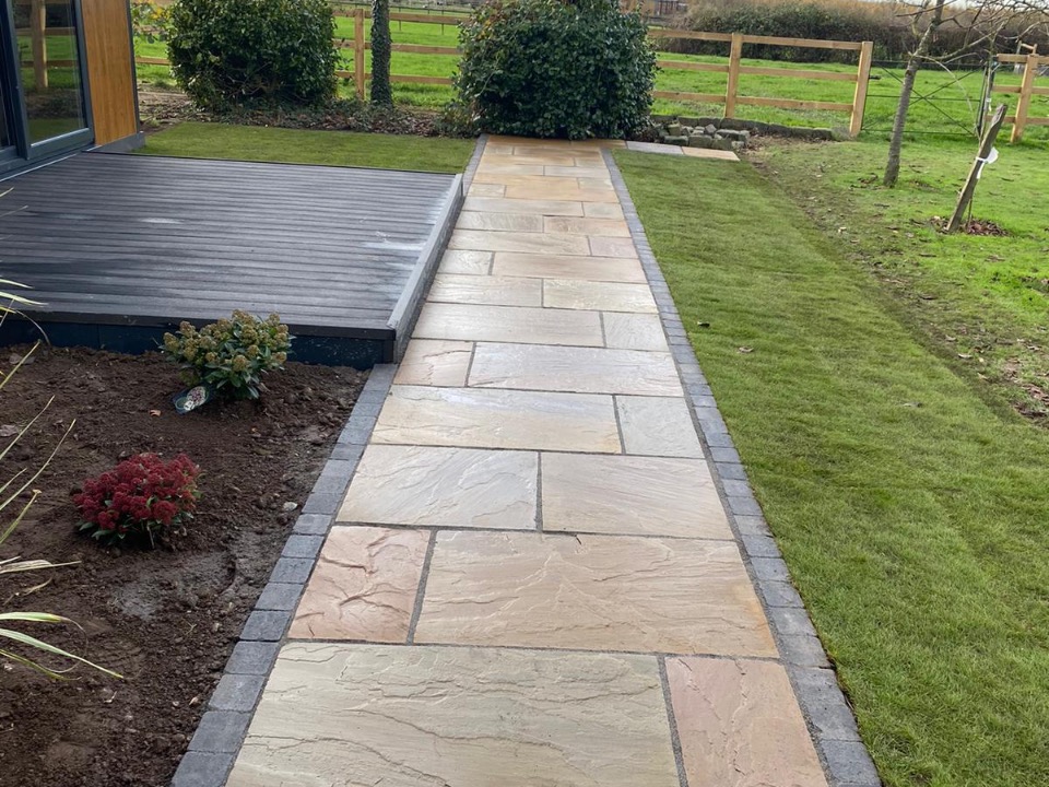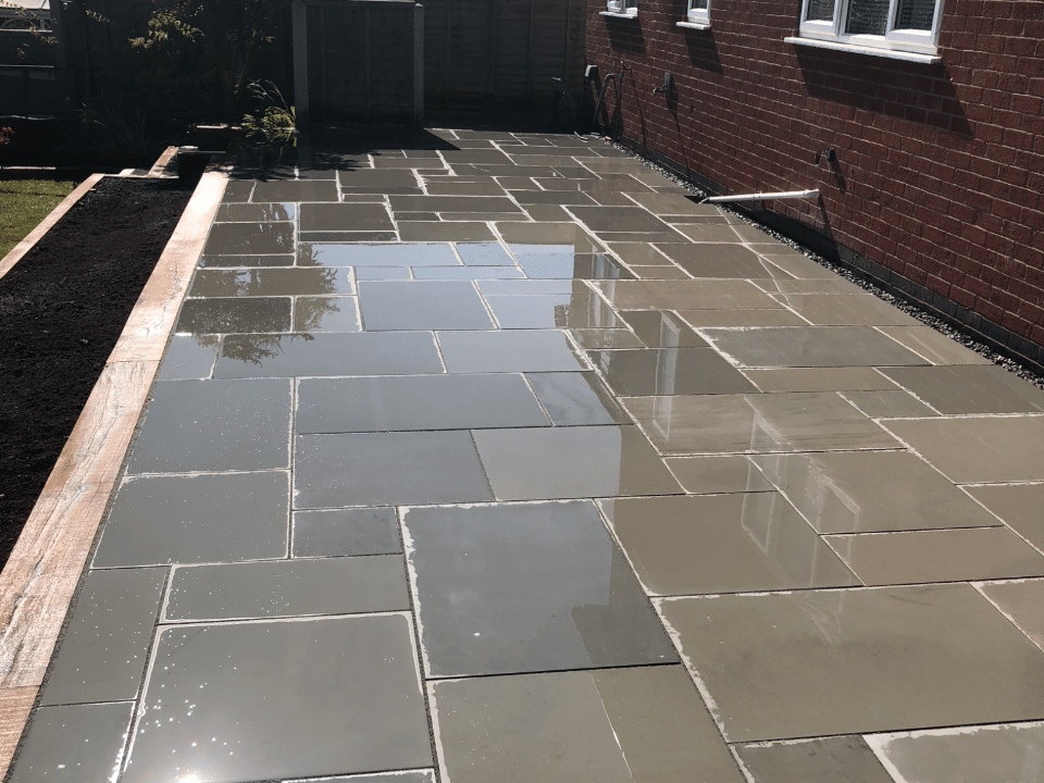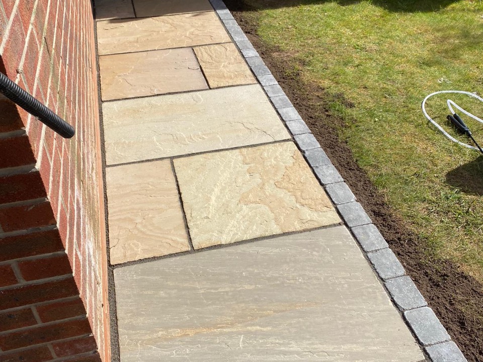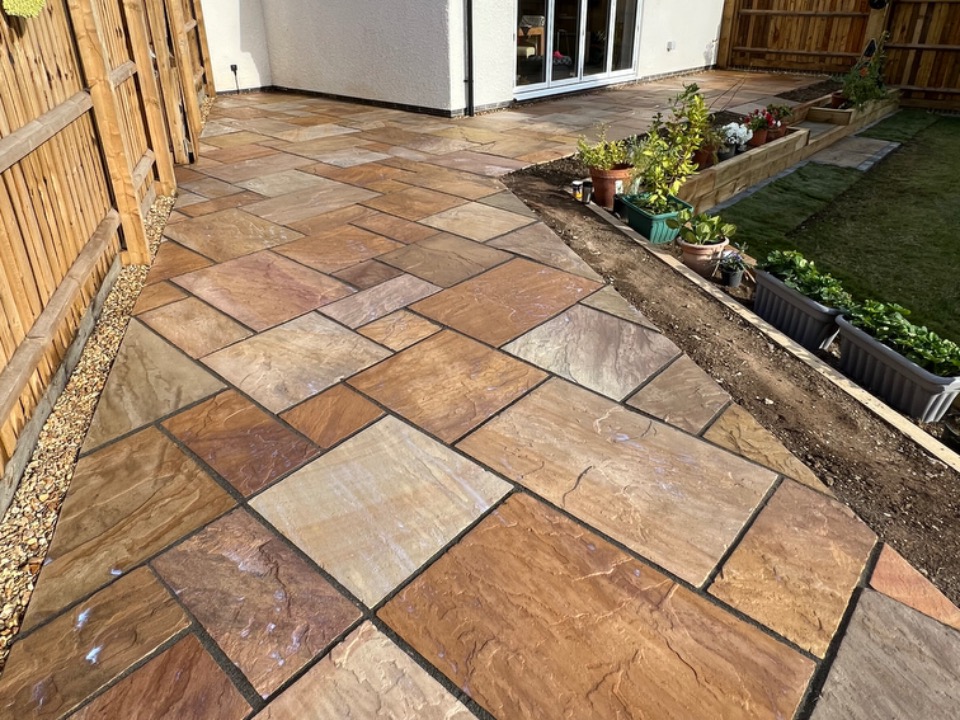 James and his team took up my existing 10x4m garden slabs and lawn. He selected the sandstone slabs (all 90x60cm), each unique with beautiful warm shades of colour, and laid these perfectly across the entire garden. James and his team have created a patio that is beyond what I had imagined, and is just stunning to look at. I would highly recommend him to my friends if they ever needed any garden work. Thank you for being so pleasant, punctual and for creating my dream patio.